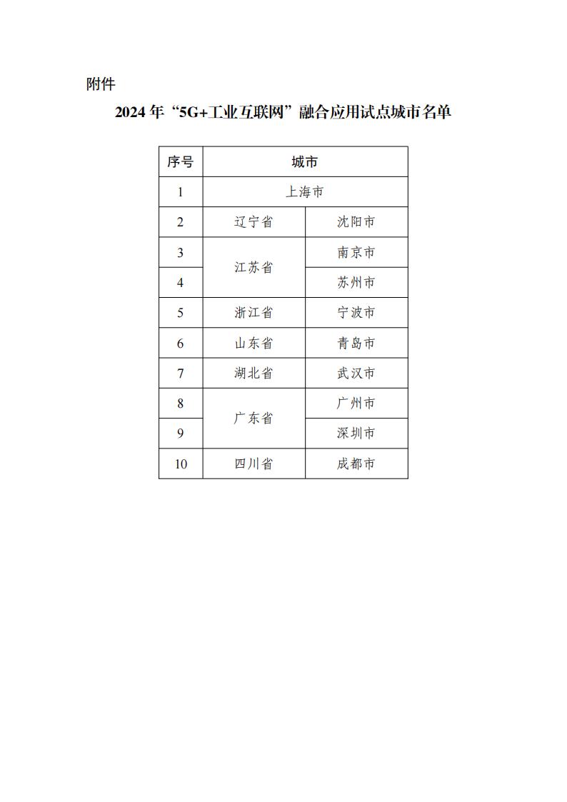 關(guān)于2024年“5G+工業(yè)互聯(lián)網(wǎng)”融合應(yīng)用試點(diǎn)城市名單的公示