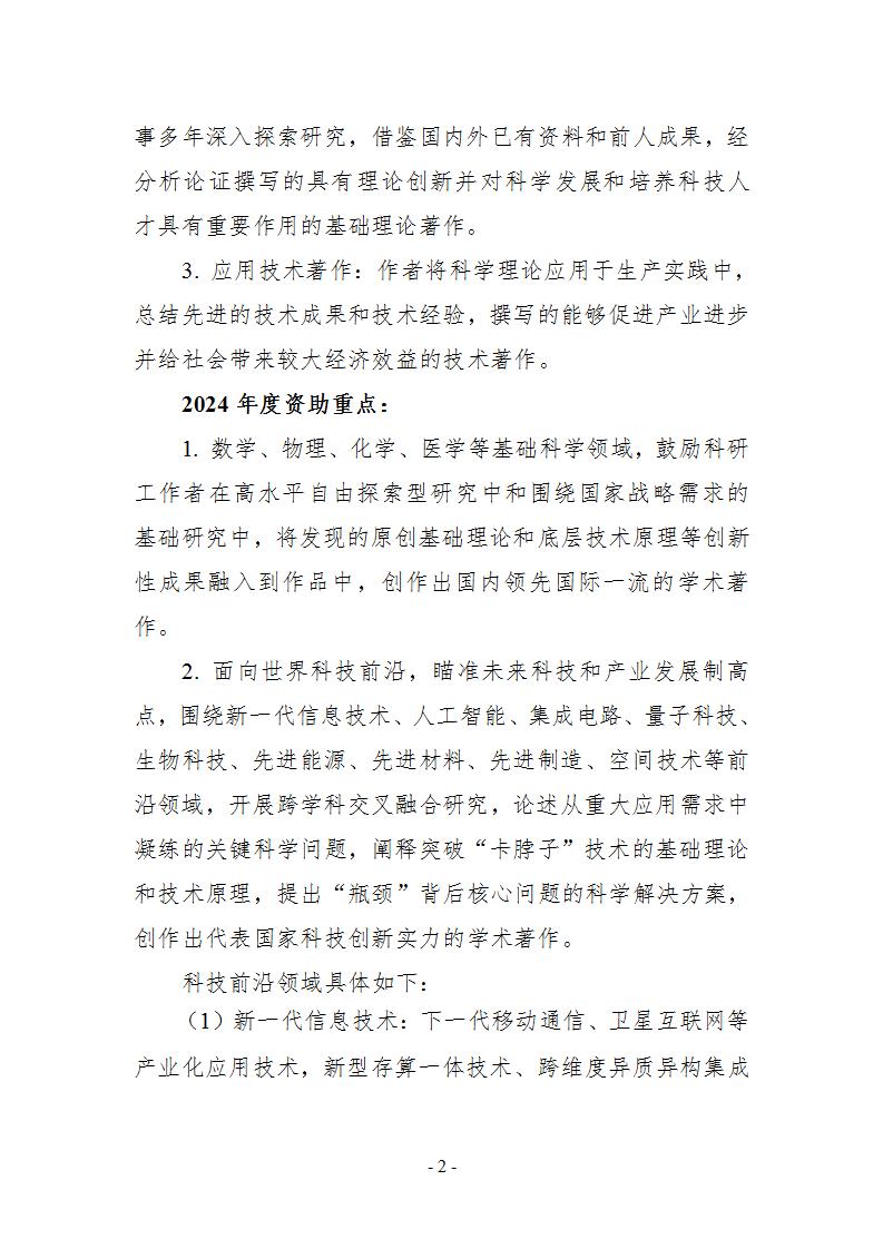 附件:國家科學技術學術著作出版基金項目資助申報指南(2024年度)
