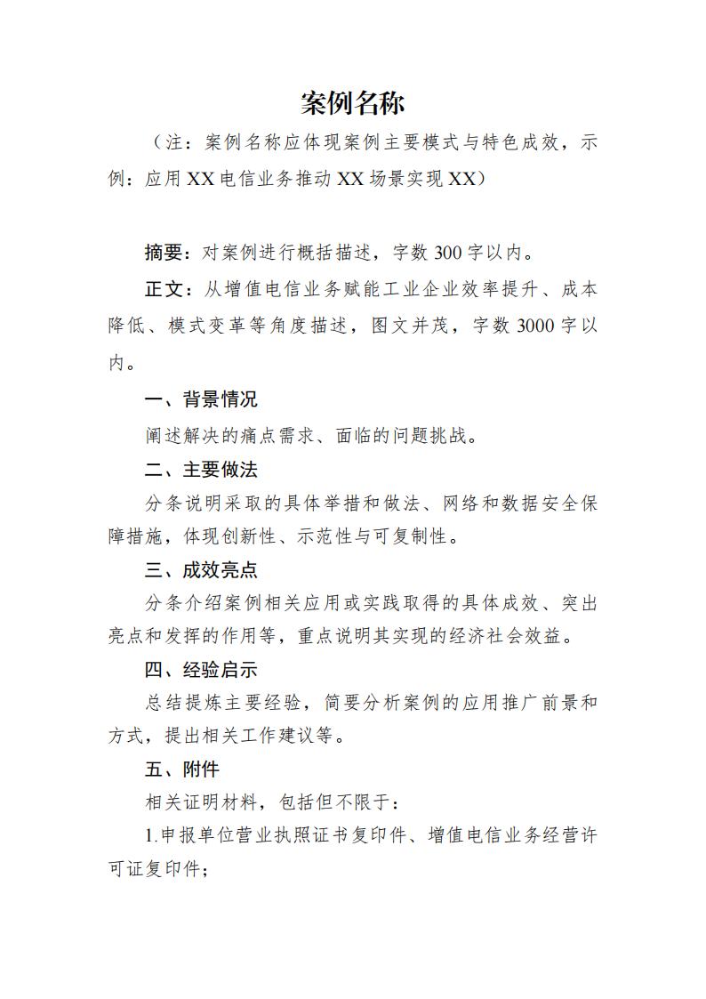 附件:1.增值電信業務賦能新型工業化典型案例申報書