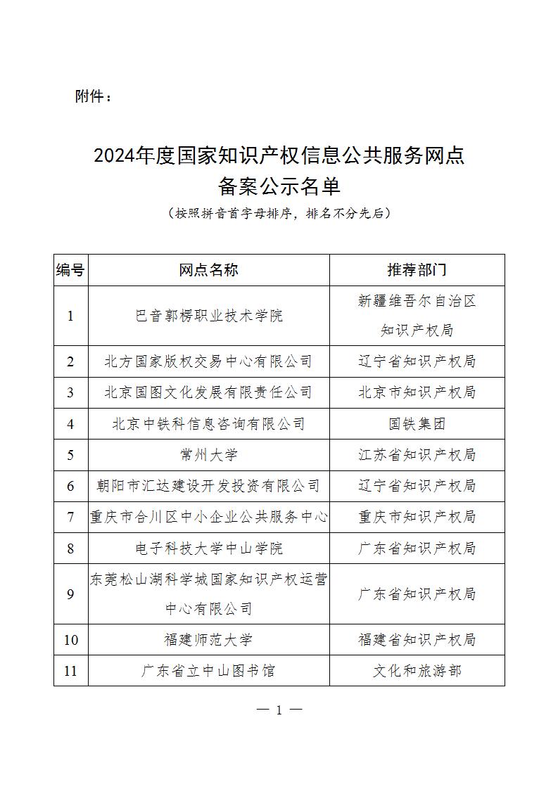 附件:2024年度國家知識產(chǎn)權(quán)信息公共服務(wù)網(wǎng)點備案公示名單