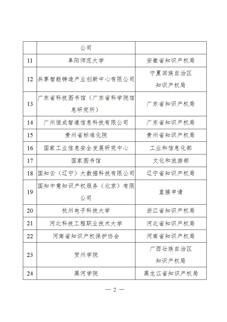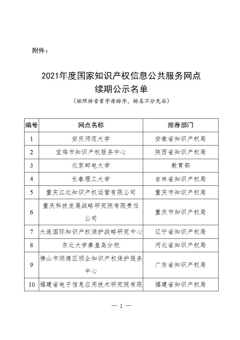 2021年度國家知識產權信息公共服務網點續期名單公示