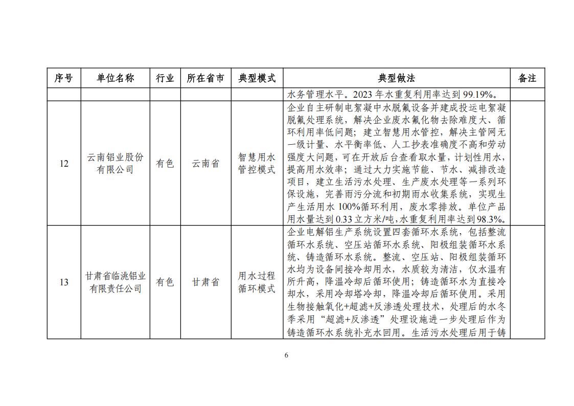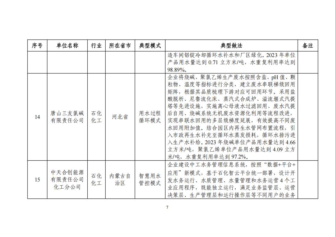關于公布2024年工業廢水循環利用典型案例名單的通知