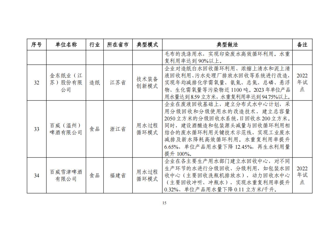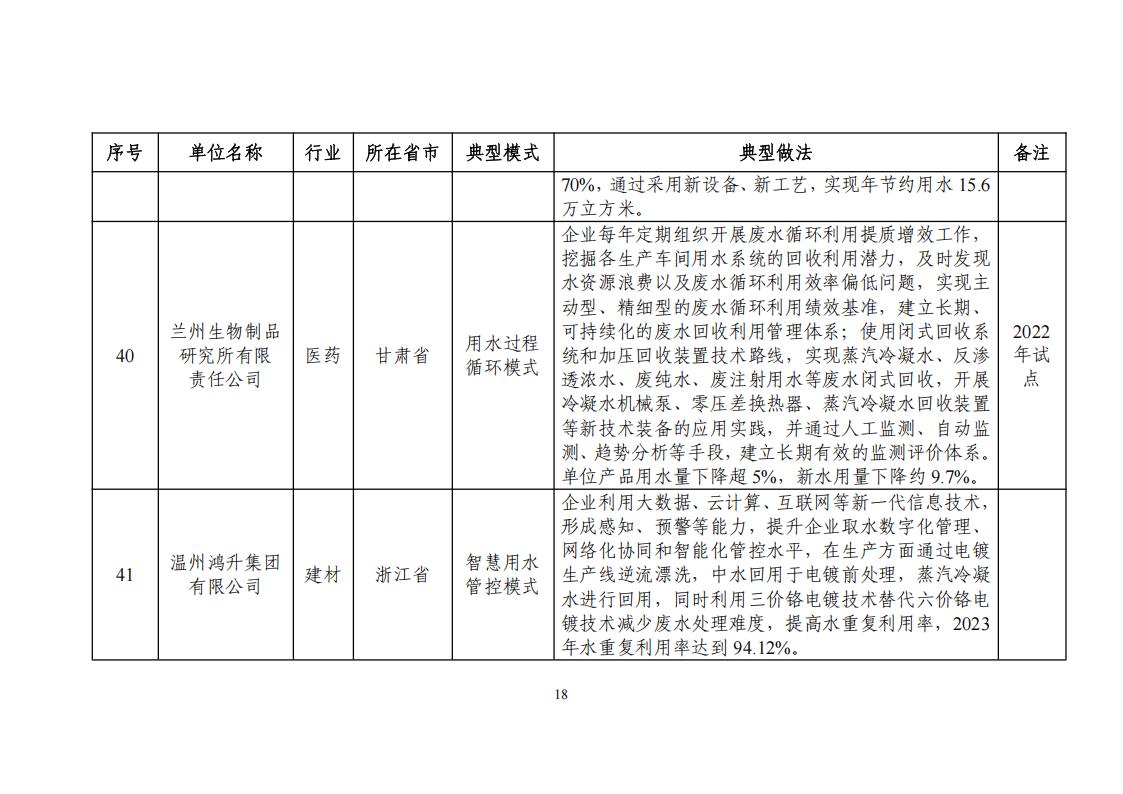 附件:2024年工業廢水循環利用典型案例名單