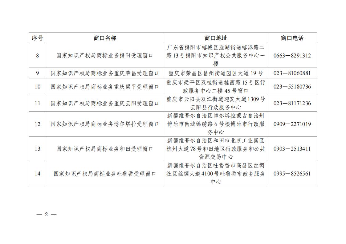 附件:國家知識產(chǎn)權(quán)局第十七批商標(biāo)業(yè)務(wù)受理窗口名單