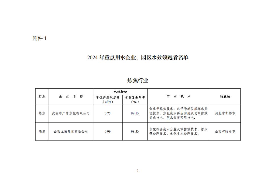 附件:1.2024年重點用水企業、園區水效領跑者名單