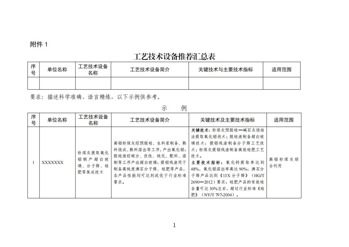 附件:1.工藝技術(shù)設(shè)備推薦匯總表