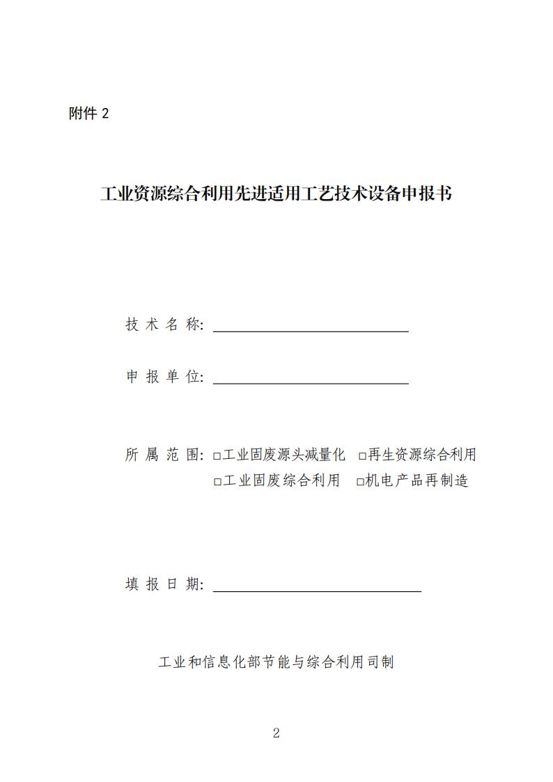 2.工業(yè)資源綜合利用先進適用工藝技術(shù)設(shè)備申報書