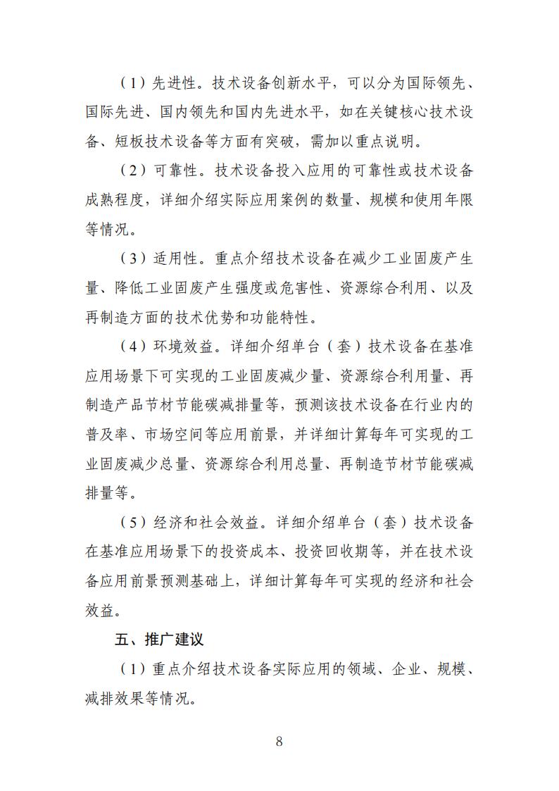 為貫徹落實《固體廢物污染環(huán)境防治法》,加快推進工業(yè)固廢源頭減量和規(guī)模化、高值化利用,提升再生資源綜合利用水平,發(fā)展高端智能再制造,擬遴選發(fā)布一批工業(yè)資源綜合利用先進適用工藝技術(shù)設(shè)備目錄。現(xiàn)開展推薦工作,有關(guān)事項通知如下: