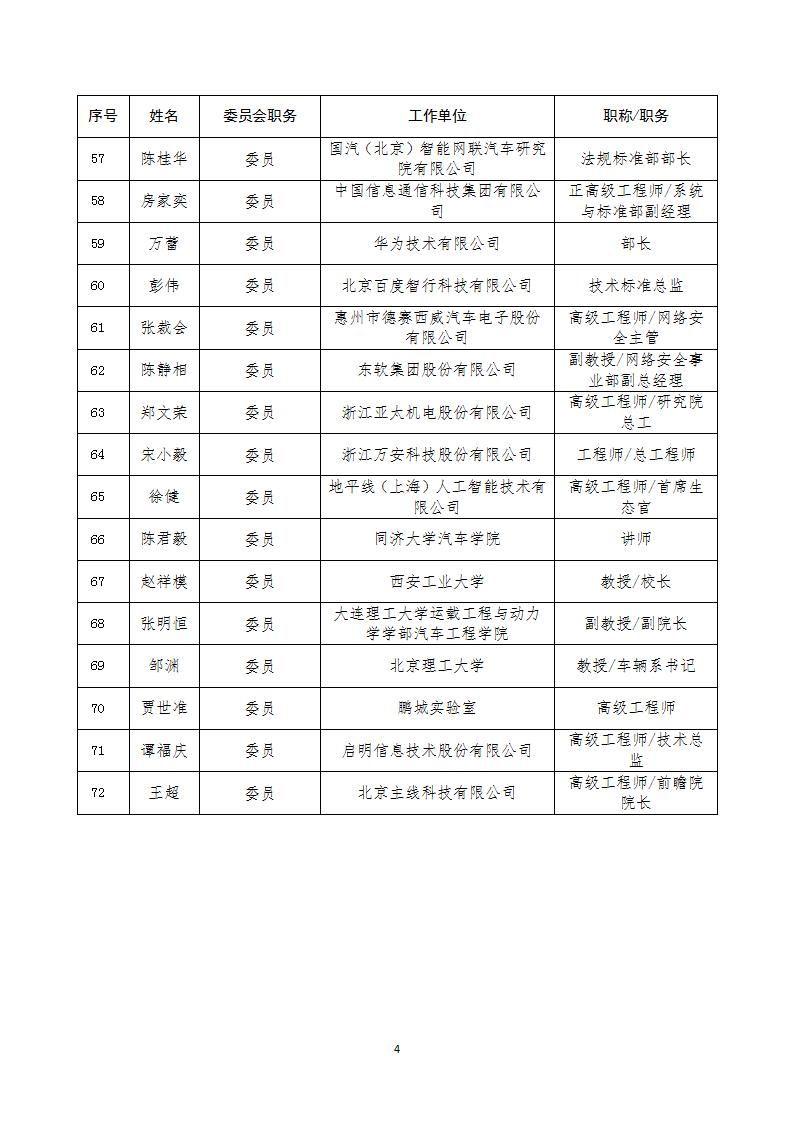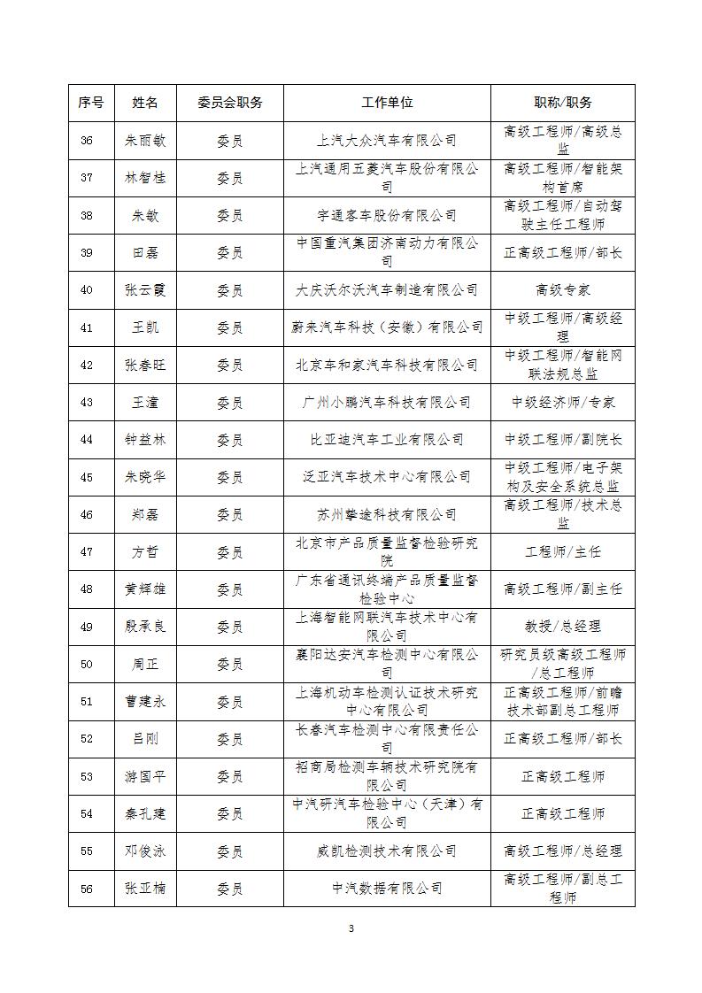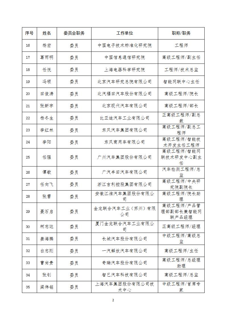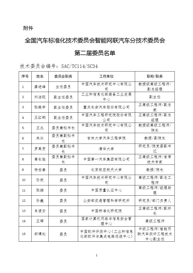 附件:全國汽車標準化技術委員會智能網聯汽車分技術委員會第二屆委員名單