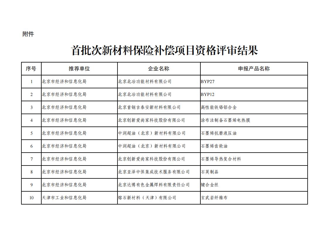 根據《關于進一步完善首臺(套)重大技術裝備首批次新材料保險補償政策的意見》(工信部聯重裝〔2024〕89號),按照《關于組織開展2024年首批次新材料保險補償資格審定工作的通知》(工信廳原函〔2024〕473號)要求,我部組織開展首批次新材料保險補償項目資格評審工作,現將評審結果予以公示,公示期為2025年3月7日至3月14日。請社會各界監督。如有異議,請書面形式反饋。