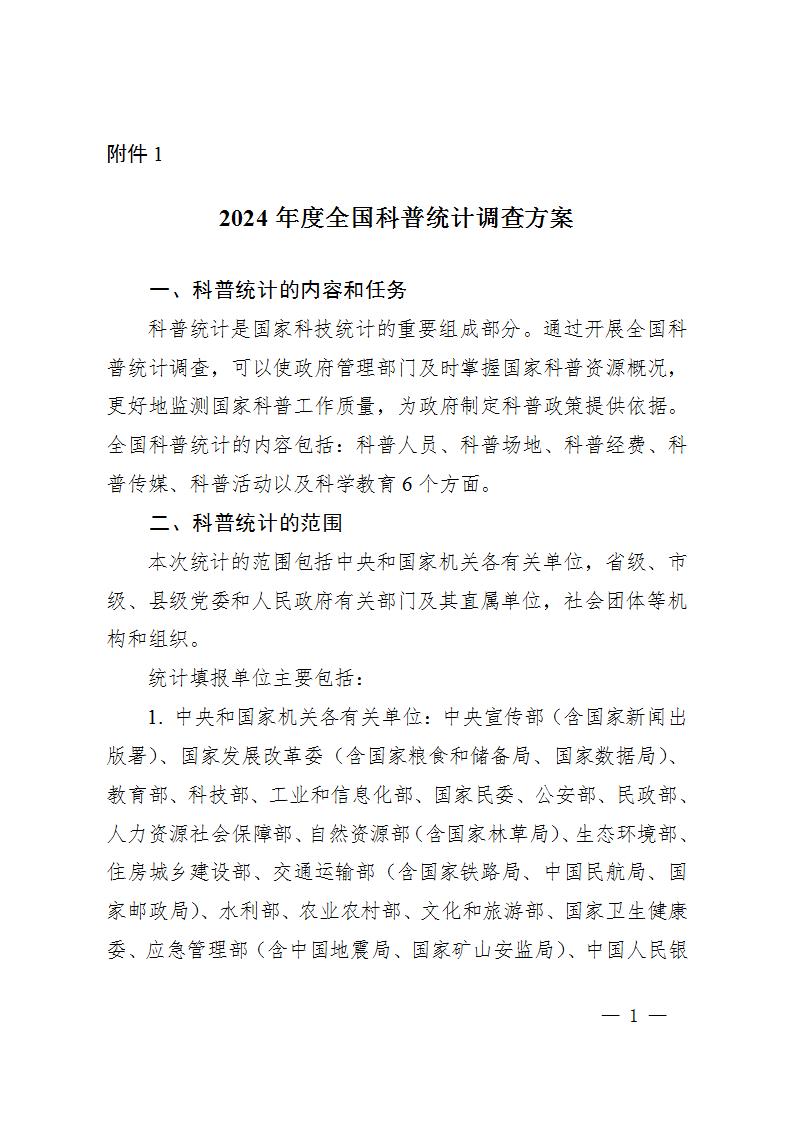 科技部|關于開展2024年度全國科普統計調查工作的通知