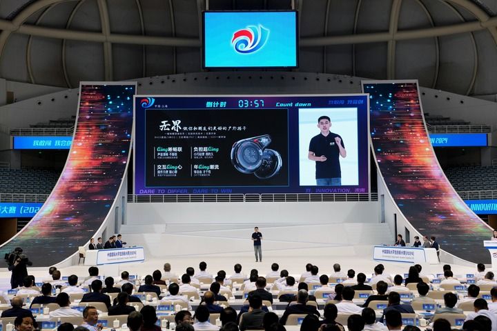 ??在中國國際大學生創新大賽(2024)冠軍爭奪賽現場,西安電子科技大學的“無界BOUNDLESS——開創民生保障通聯新紀元”項目在進行展示(2024年10月15日攝)。新華社記者 劉穎 攝