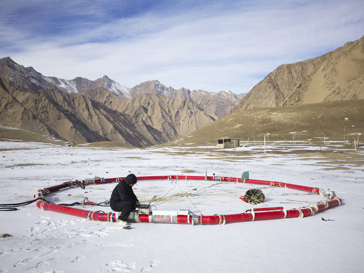 ??科研人員在新疆和田地區測試航空大地電磁探測系統(2025年1月11日攝)。新華社發(郭豐 攝)