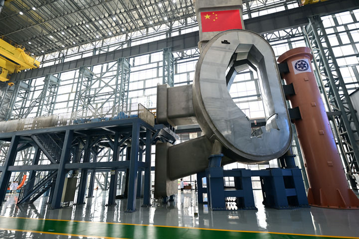 ??中國科學院合肥物質科學研究院大科學團隊研制的聚變堆主機關鍵系統綜合研究設施八分之一真空室及總體安裝系統主體平臺(2025年3月9日攝)。新華社記者 周牧 攝