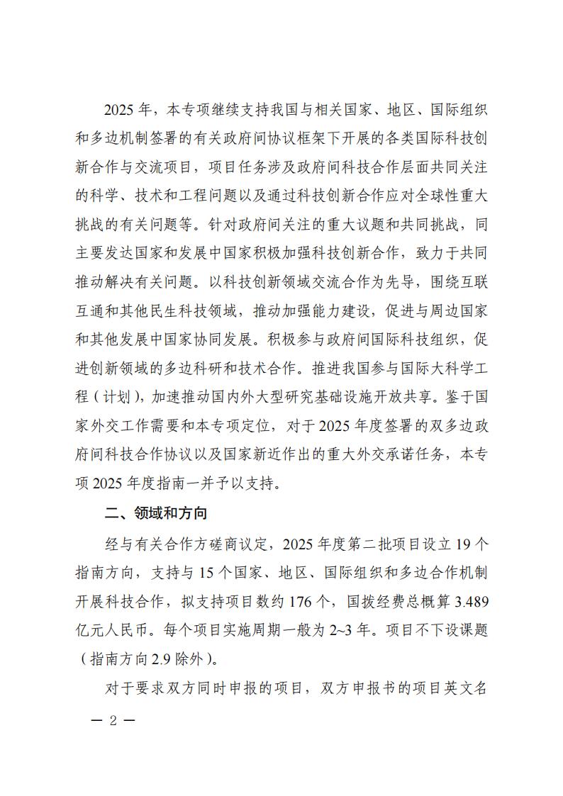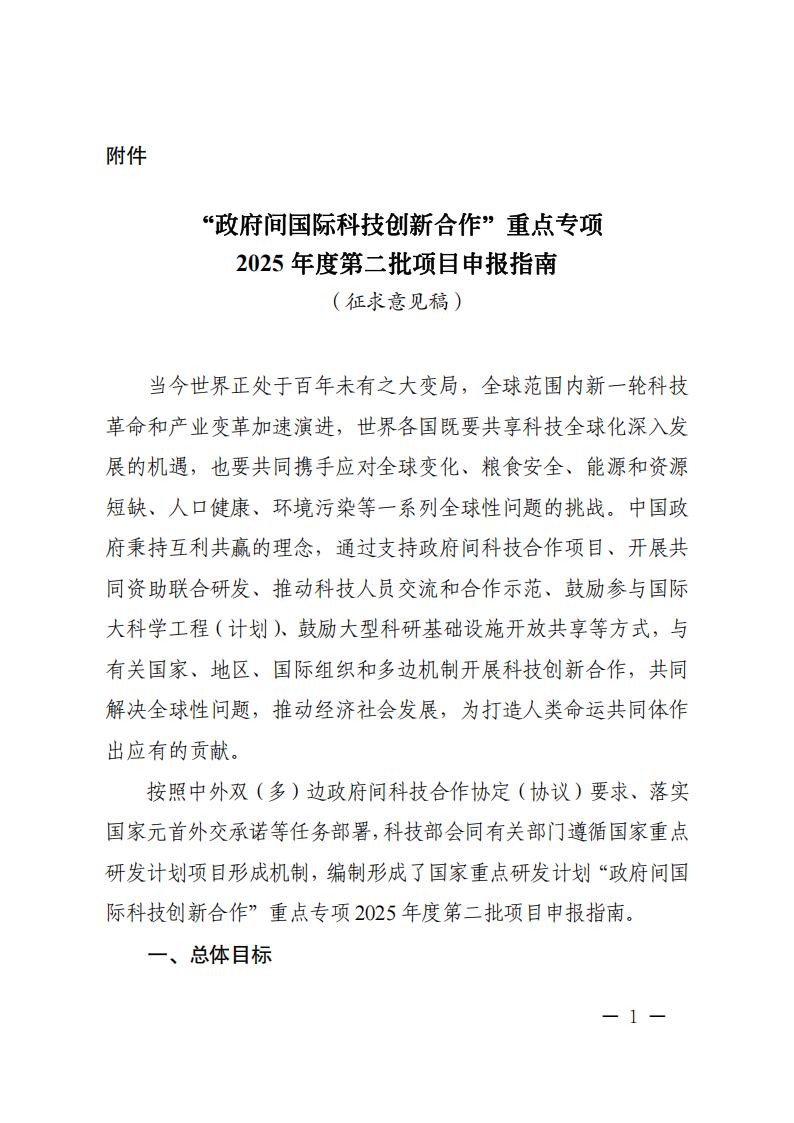 國家重點研發(fā)計劃“政府間國際科技創(chuàng)新合作”重點專項2025年度第二批項目申報指南征求意見