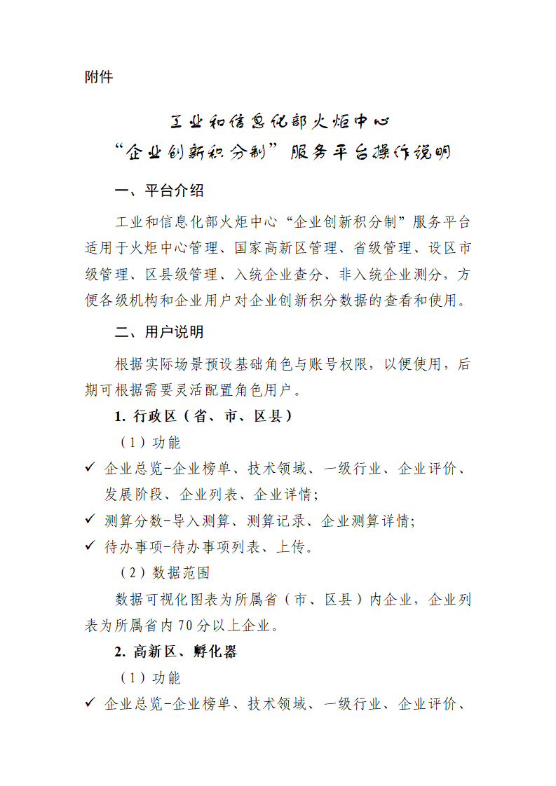 附件:工業和信息化部火炬中心“企業創新積分制”服務平臺操作說明