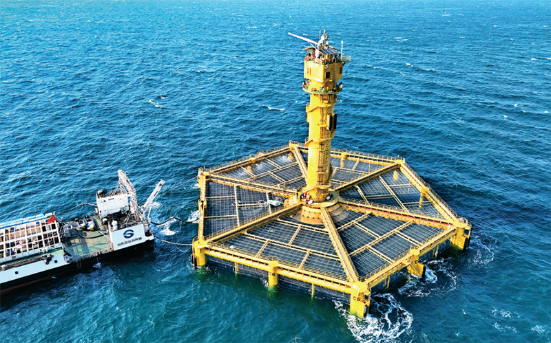 ??近年來,我國在一些共性技術研發創新上不斷取得突破。圖右側為我國自主研制的大型全潛式深海智能漁業養殖裝備——“深藍2號”(2025年1月12日攝,無人機照片)。 新華社記者 李紫恒/攝