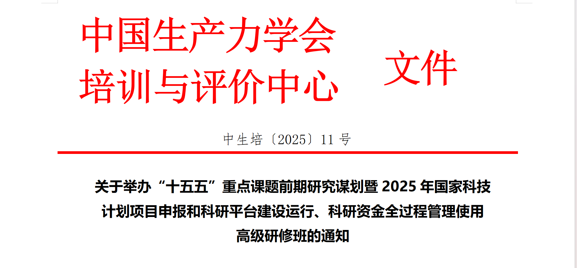 關(guān)于舉辦“十五五”重點(diǎn)課題前期研究謀劃暨2025年國(guó)家科技計(jì)劃項(xiàng)目申報(bào)和科研平臺(tái)建設(shè)運(yùn)行、科研資金全過程管理使用高級(jí)研修班的通知
