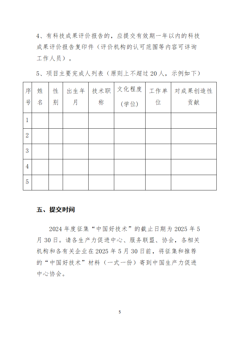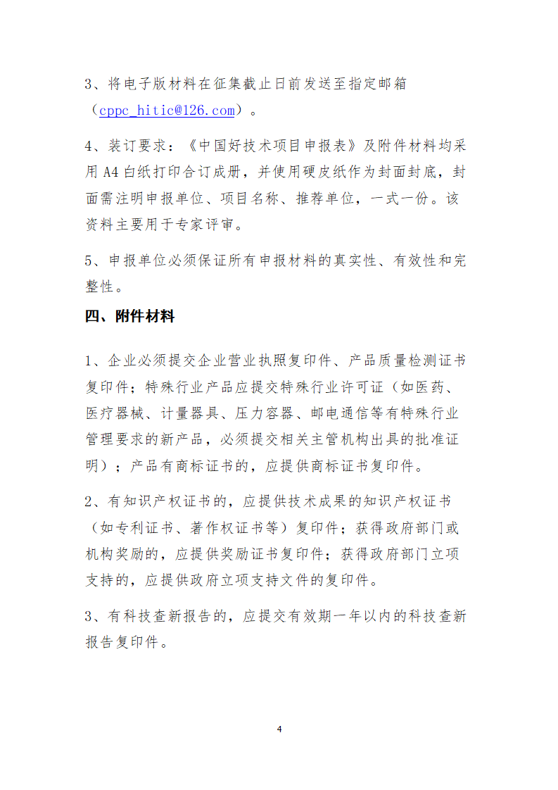 各申報單位請于2025年5月30日前按照《2024年度“中國好技術(shù)”征集方案》要求將紙質(zhì)申報材料裝訂成冊,一式一份,快遞至協(xié)會(以快遞寄出郵戳?xí)r間為準(zhǔn)),并將電子版材料發(fā)送至指定郵箱(cppc_hitic@126.com),逾期不予受理。