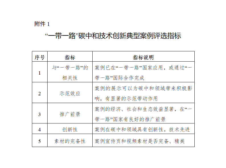 附件:1. “一帶一路”碳中和技術創(chuàng)新典型案例評選指標