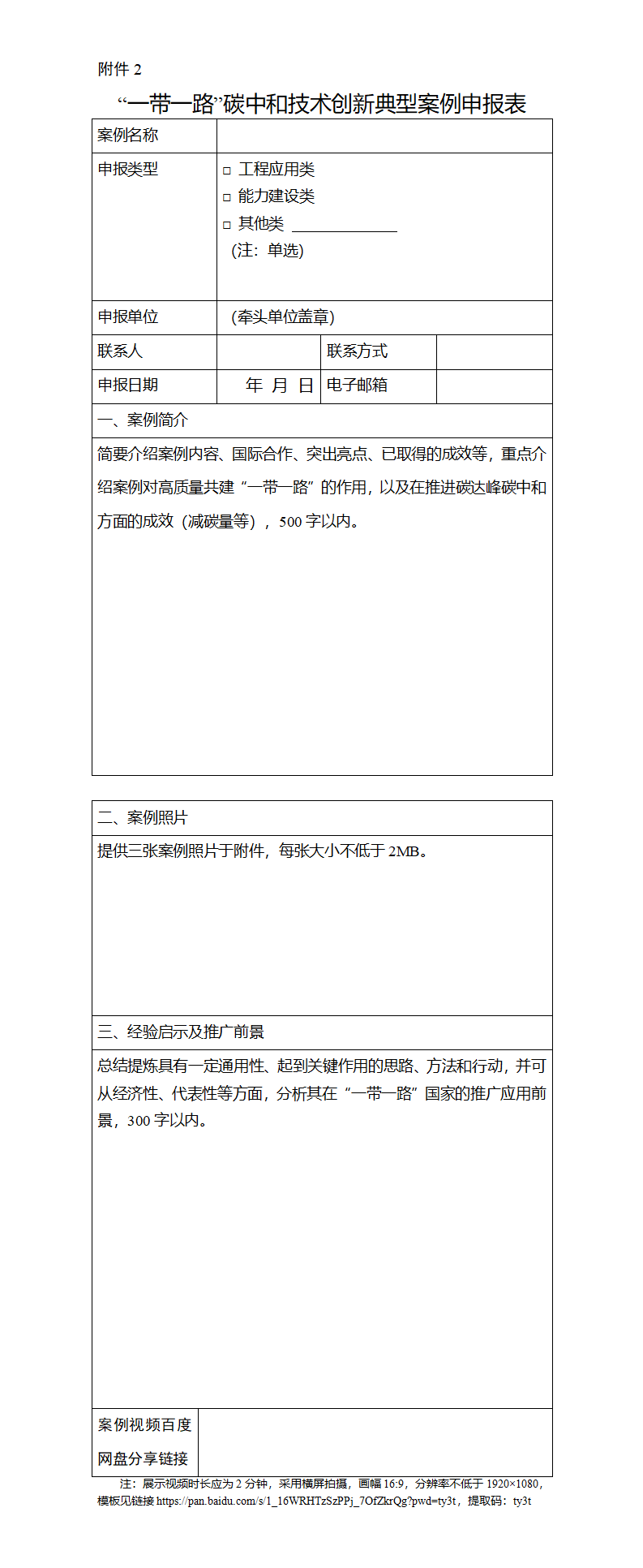 2. “一帶一路”碳中和技術創(chuàng)新典型案例申報表