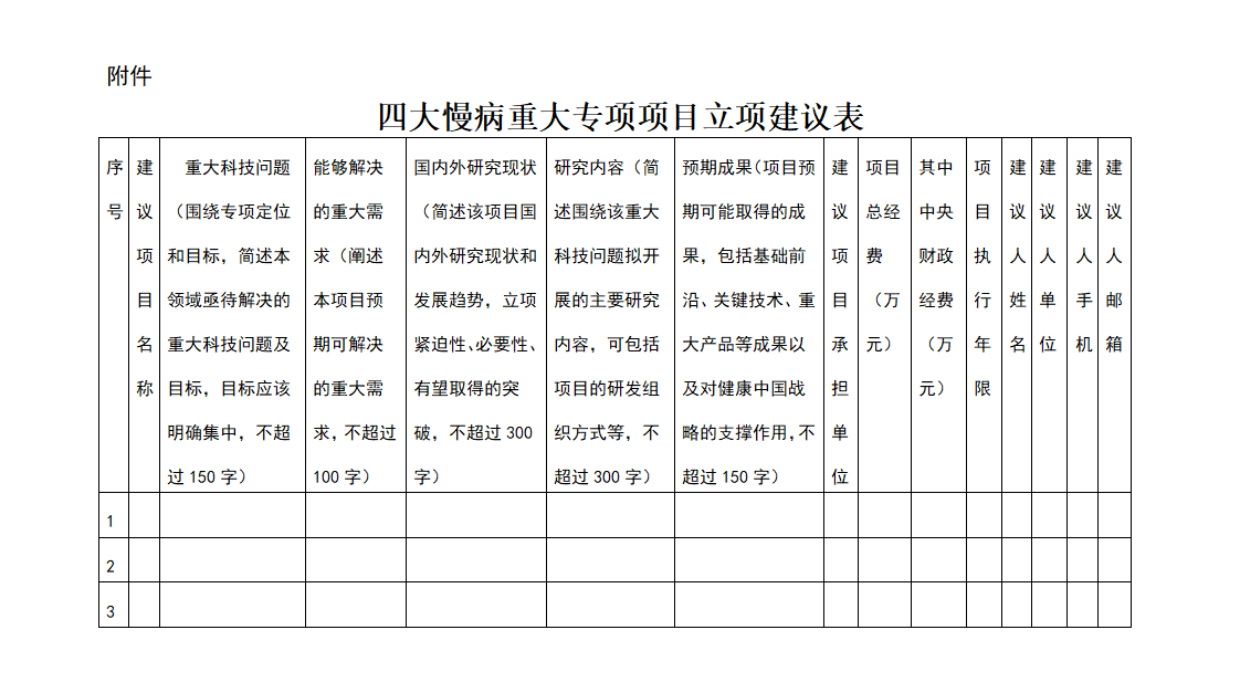 附件:四大慢病重大專項(xiàng)項(xiàng)目立項(xiàng)建議表