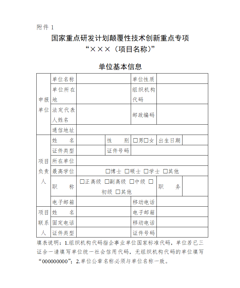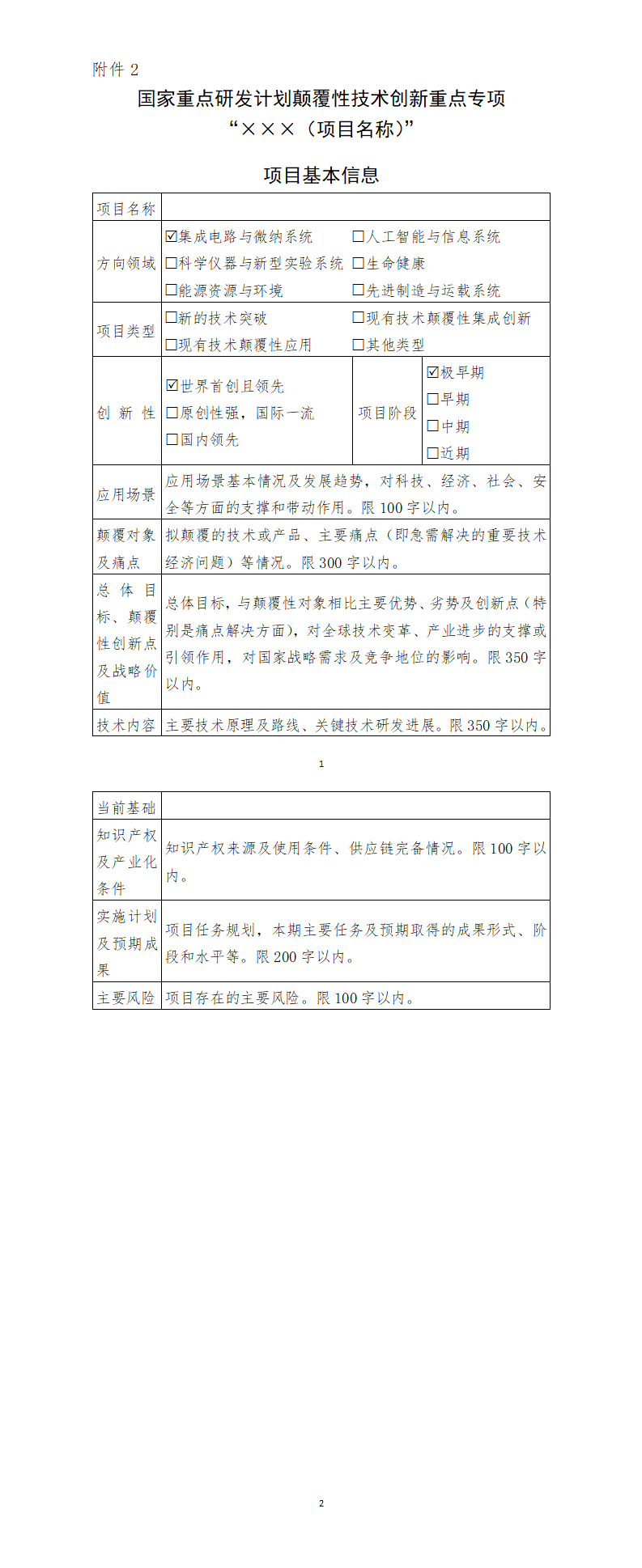 國家重點研發計劃顛覆性技術創新重點專項2025年度項目申報指引